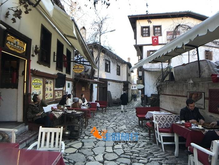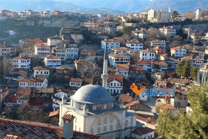 酒店是个古老的房子,老板很帅,反正我总感觉土耳其人男人都帅,女人都漂亮,可能是欧亚人五官比较清晰却又不会欧美人太过夸张,比较适合我亚洲人的审美观罢了。放下行李就迫不急待的拿着相机往外跑,酒店的后山,正式阳光最佳时候,可以鸟瞰全景。番红花古城修建在一个山谷咯,古老美丽的别墅在山腰错落有致。谷底是城镇最繁华的地方,又古老的清真寺,土耳其浴室,还有一座丝路的古驿站,如今已经成为一个酒店。