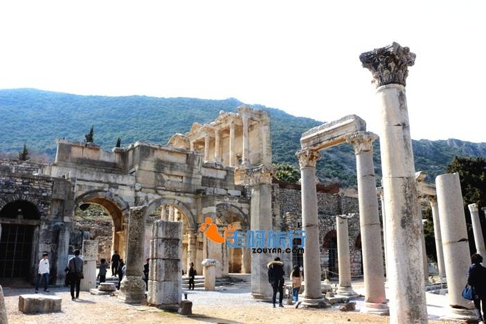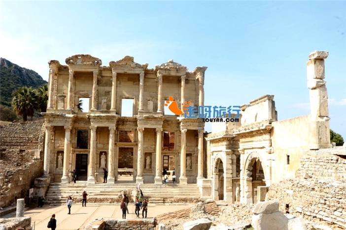 在以弗所古城中可以看到许多立柱和拱门,这是古希腊和古罗马建筑风格。这里有拜占庭时代世界三大图书馆之一的塞尔苏斯图书馆。