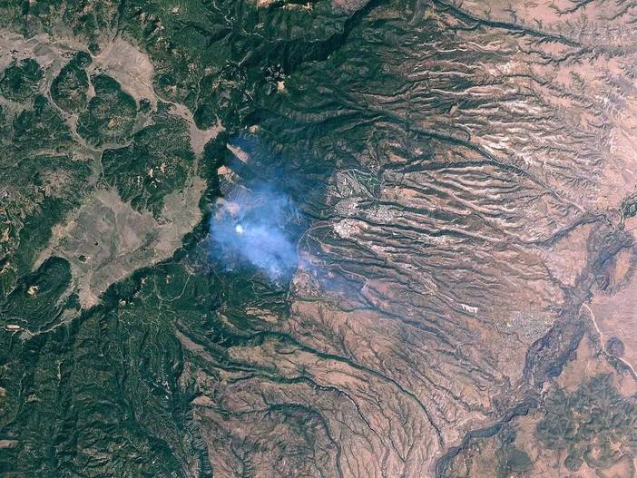 (2000年NASA拍摄的洛斯阿拉莫斯附近区域,白烟为植被火灾造成)