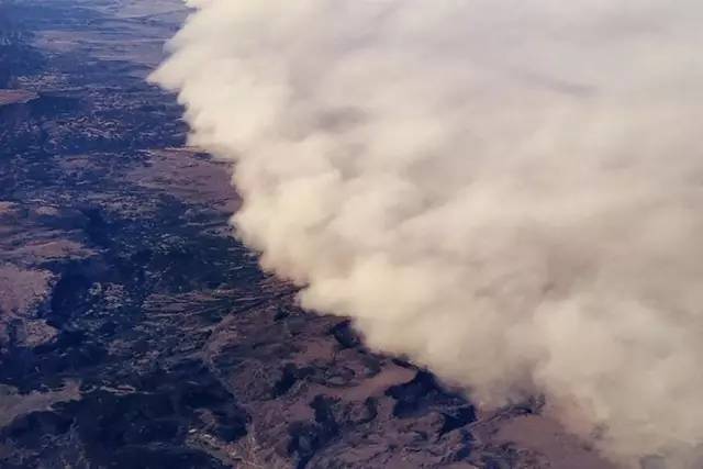(2014年发生在美国中部的一场沙尘暴,拍摄于从洛杉矶飞往芝加哥的航班上,摄影师@Amanda Wicks)